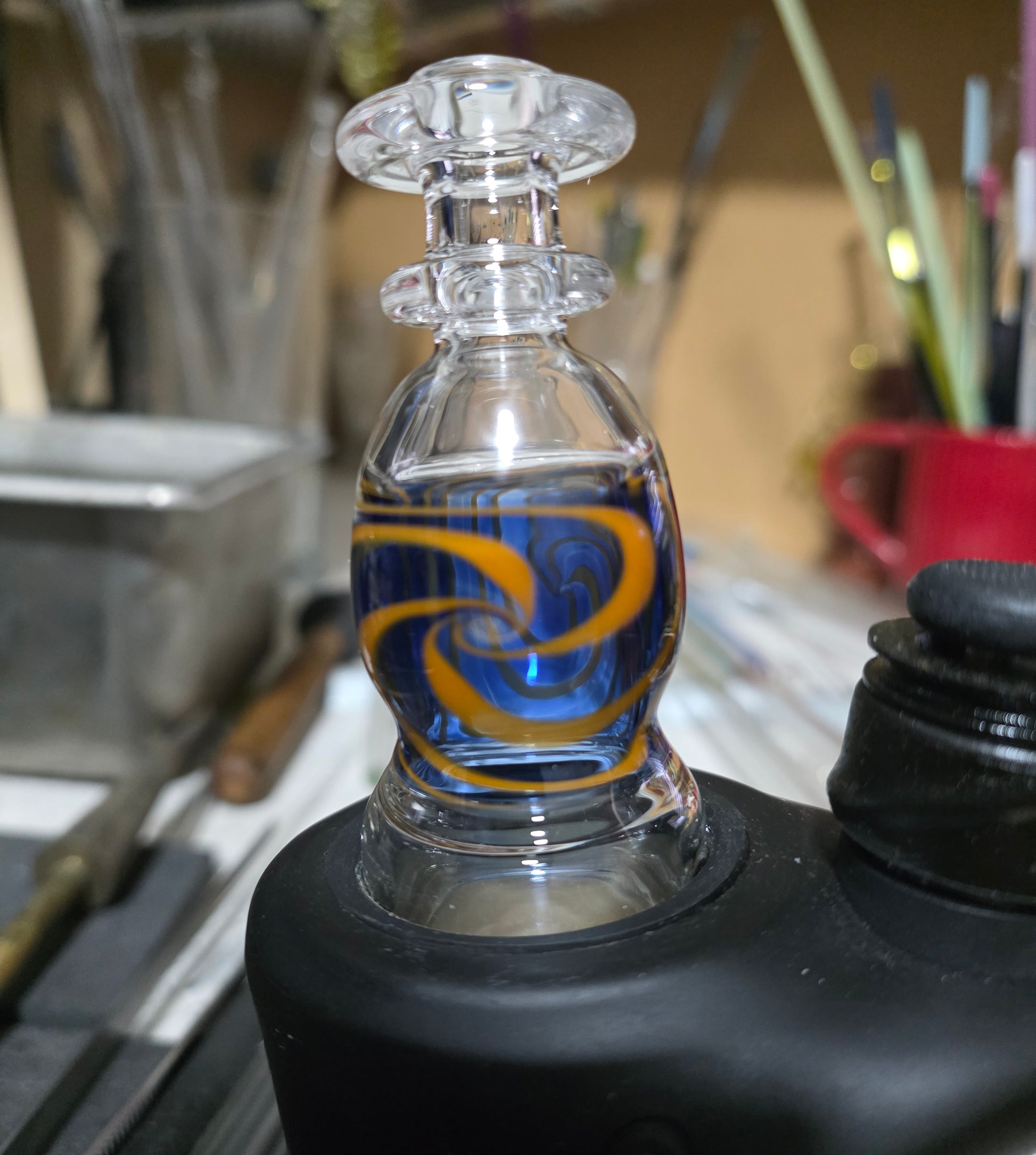 Carta drytop spiraled in blue and orange....ready to travel. No spill, so great to leave in your bag for whenever you need it.. bring out the flavor on your favorite rosin!!! Shipping daily!!