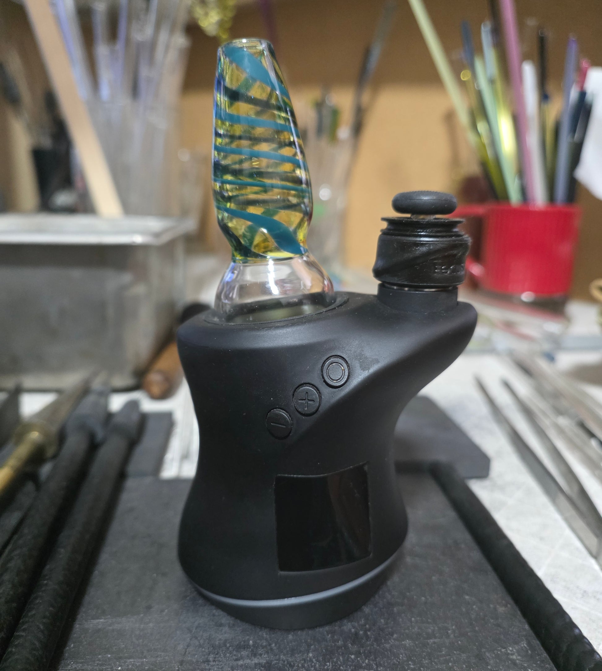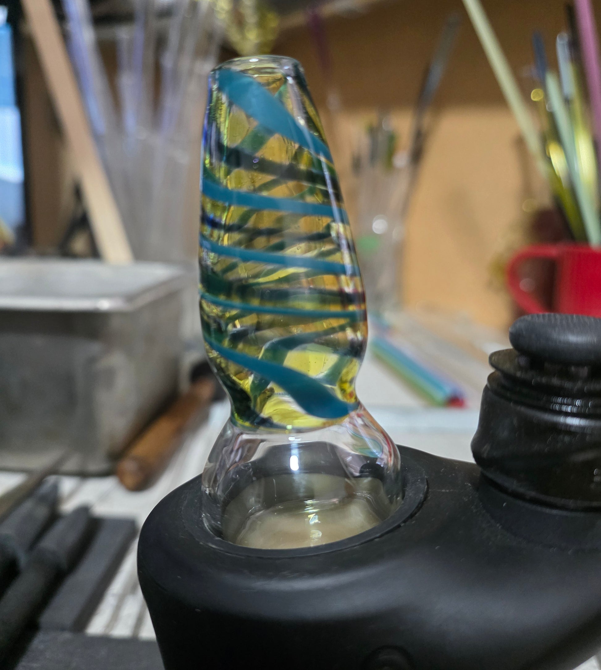 Carta drytop spiraled in terps cfl, teal and heavy blue stardust... its ready to travel. No spill, so great to leave in your bag for whenever you need it.. bring out the flavor on your favorite rosin!!! Shipping daily!!